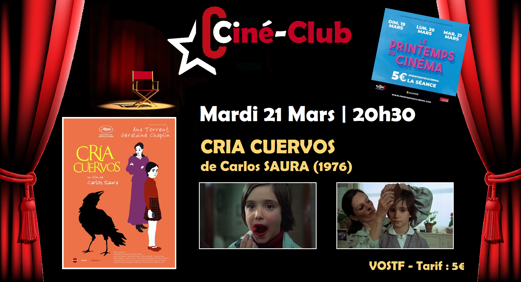 MARDI 21 MARS 2023 | 20h30 | CINÉ-CLUB V #6 : CRIA CUERVOS de Carlos SAURA