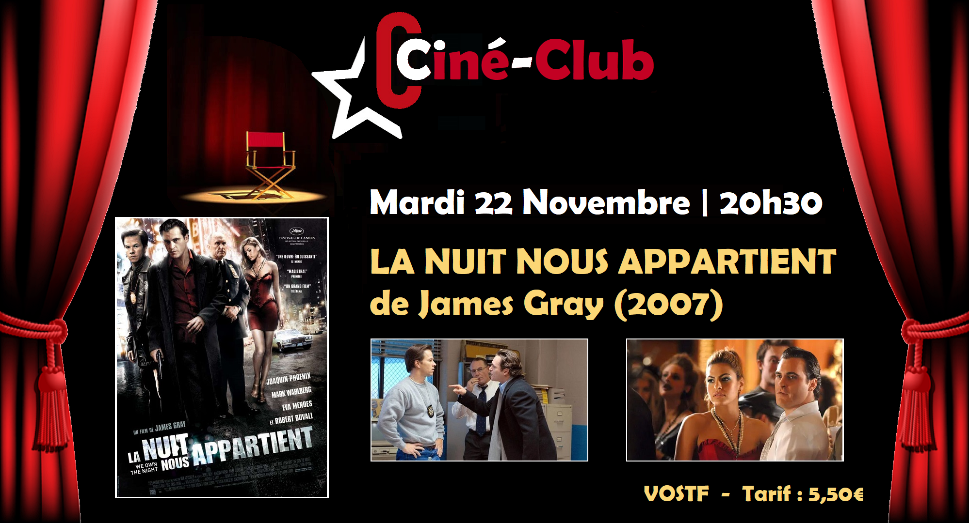MARDI 22 NOVEMBRE 2022 | 20h30 | CINÉ-CLUB V #3 : LA NUIT NOUS APPARTIENT de James GRAY