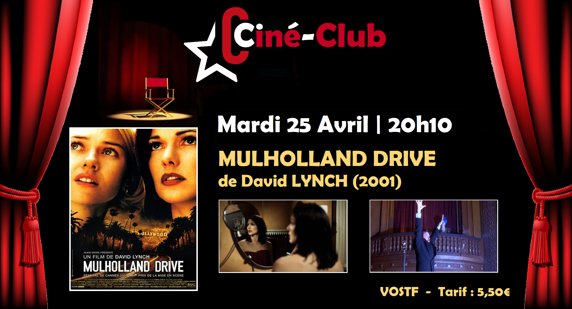 MARDI 25 AVRIL 2023 | 20h10 | CINÉ-CLUB V #7 : MULHOLLAND DRIVE de David LYNCH