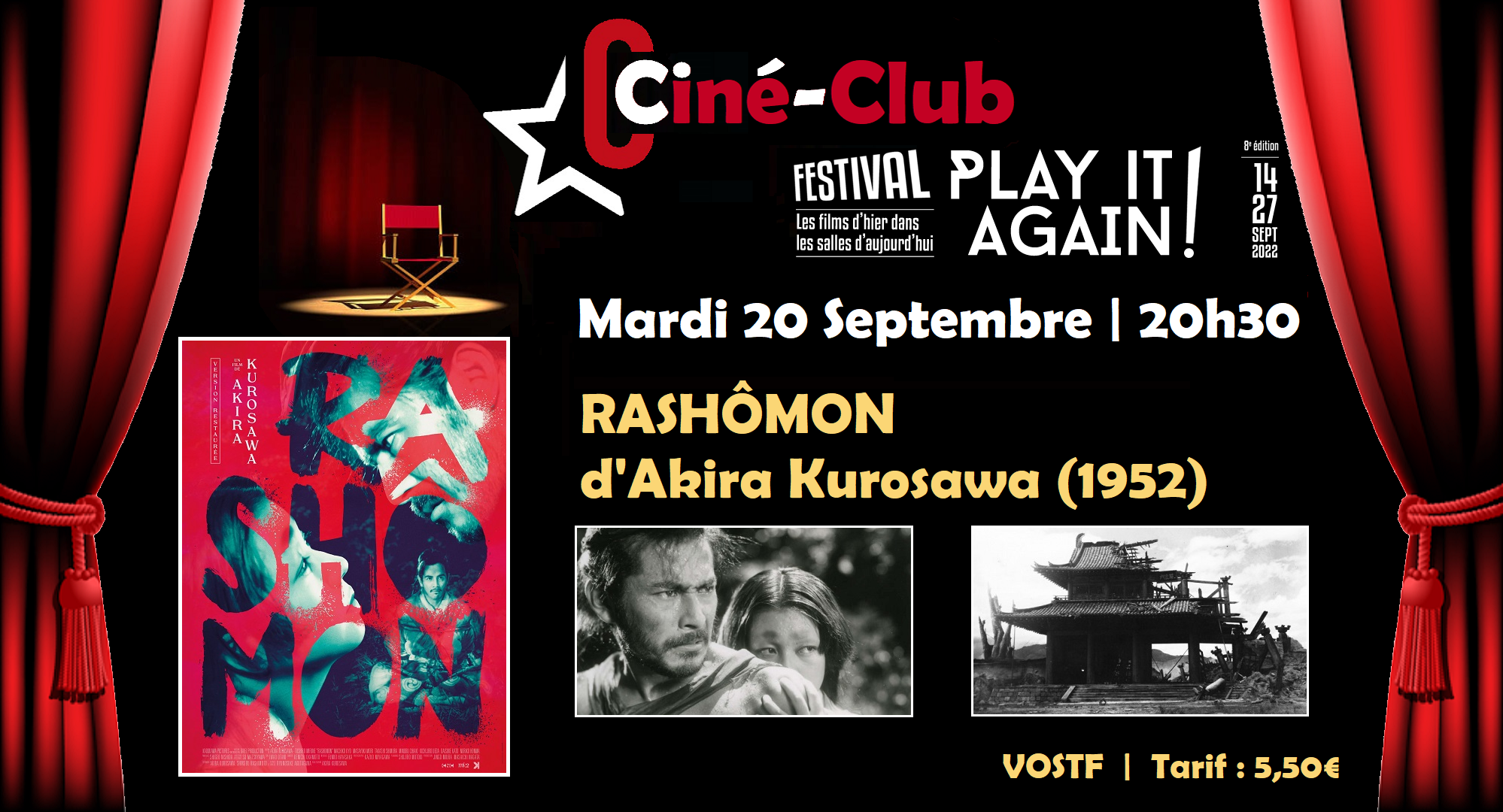 MARDI 20 SEPTEMBRE 2022 | 20h30 | CINÉ-CLUB V #1 : RASHOMON d'Akira KUROSAWA - VOSTF