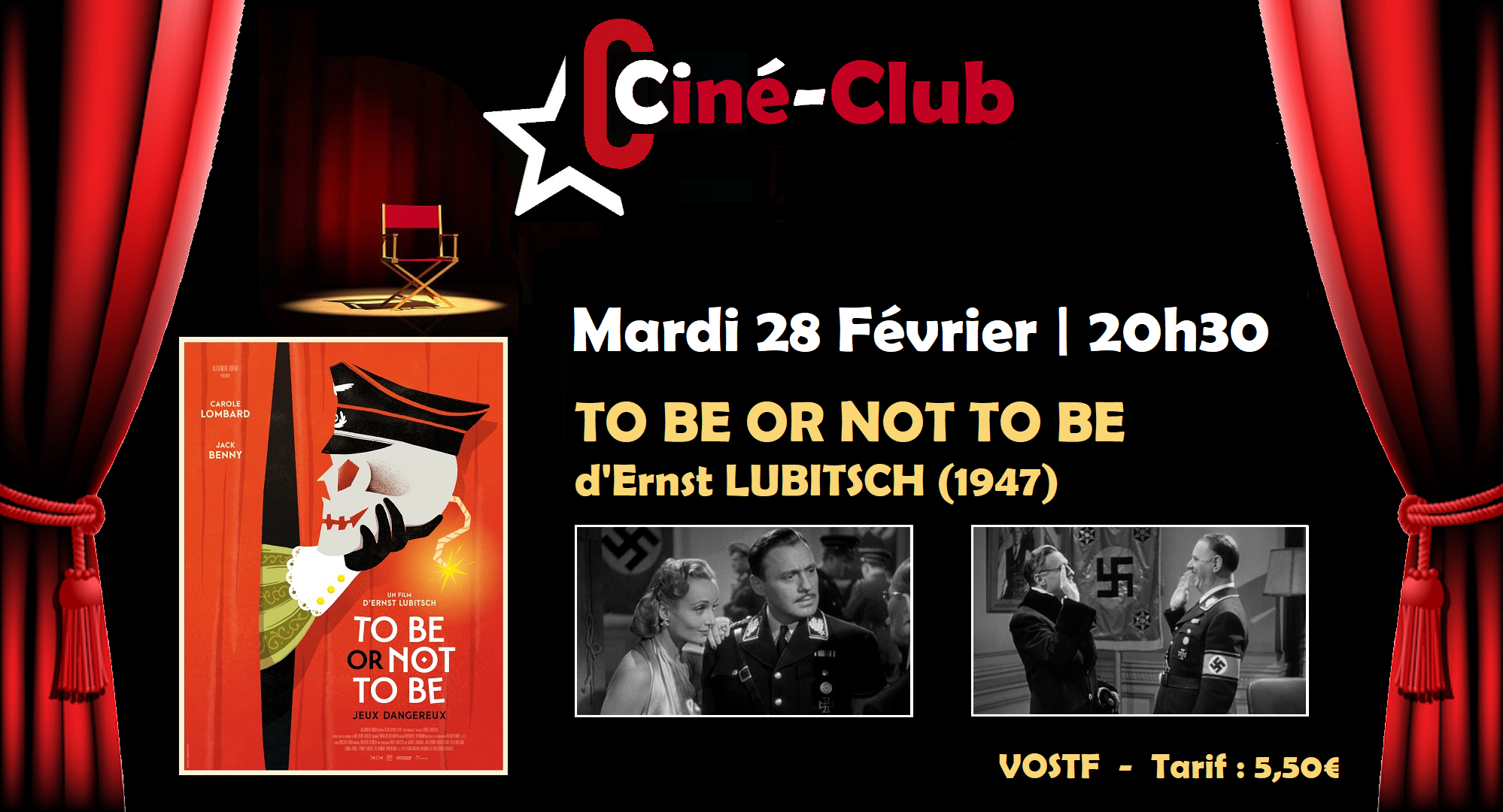 MARDI 28 FEVRIER 2023 | 20h30 | CINÉ-CLUB V #5 : TO BE OR NOT TO BE d'Ernst LUBITSCH