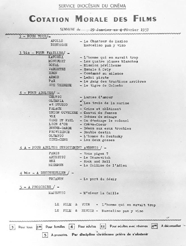 Dans l’ouest de la France, les patronages réorganisent leurs activités cinématographiques en créant le GASFO (Groupement des Associations des Salles Familiales de l’Ouest), chargé de coordonner la distribution des films pour tous les cinémas catholiques bretons.