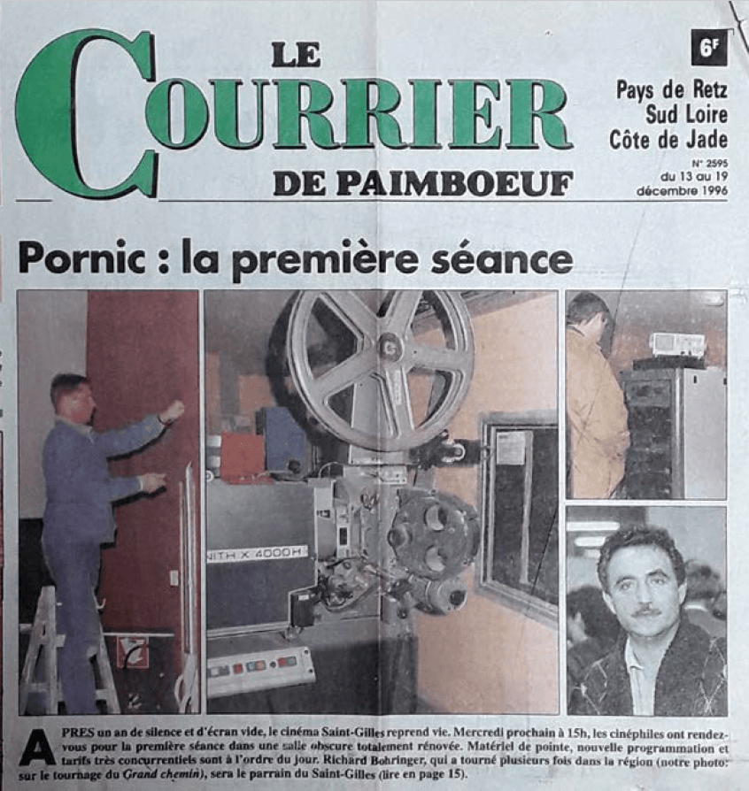 En décembre 1996, après 9 mois de fermeture pour travaux, Richard Bohringer et Philippe Boennec (Maire de Pornic) inaugurent la « nouvelle » salle.