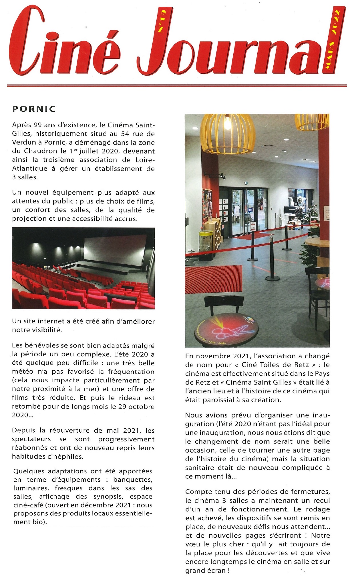 L'Association Ciné Toiles de Retz (ex-Cinéma Saint-Gilles)